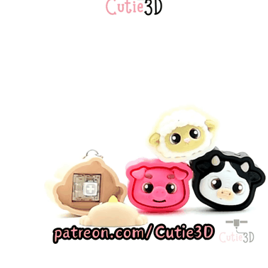 Digital Downloads - Cutie3D Clicky Farm Animal Set Fidget Clicker Keychain - Cute Backpack Keychain