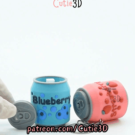 Digital Downloads - Cutie3D Strawberry Blueberry Soda Can Set of Clicker Keychains - Cute Backpack Keychain