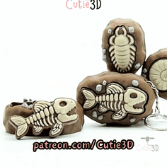 Digital Downloads - Cutie3D Ammonite Fossil Set of Clicker Keychains - Cute Backpack Keychain