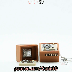 Digital Downloads - Cutie3D Vintage Record Player Fidget Clicker Keychain - Cute Backpack Keychain