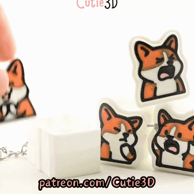 Digital Downloads - Cutie3D Set Of Corgi Emoji Keycap Fidget Clicker Keychain - Cute Backpack Keychain