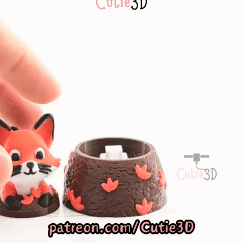 Digital Downloads - Cutie3D Fox In Fall Leaves Keycap Fidget Clicker Keychain - Cute Backpack Keychain