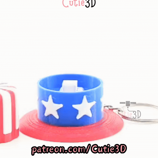Digital Downloads - Cutie3D July 4Th Hat Keycap Fidget Clicker Keychain - Cute Backpack Keychain
