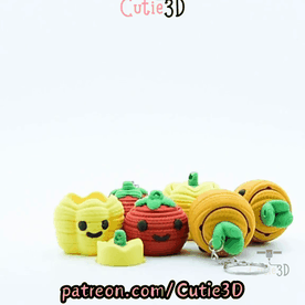 Digital Downloads - Cutie3D Kawaii Crochet Veggie Set of Keycap Clicker Keychains - Cute Backpack Keychain